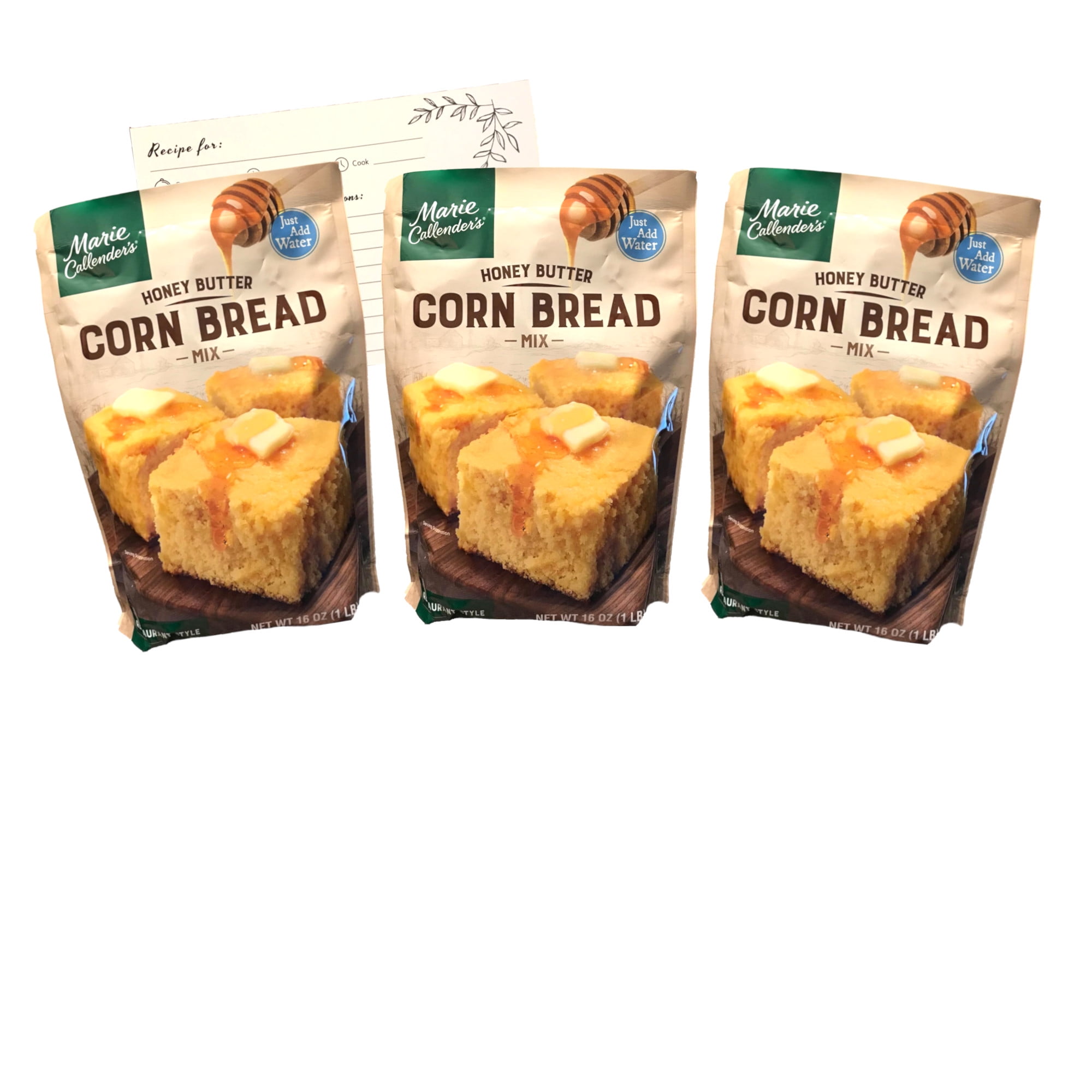 Up to 6 cash back Prepare a nice snack or side dish with this Marie Callenders Honey Butter Corn Bread mix. Preheat oven to 350 degrees F. 1 9 ounce box yellow cake mix.